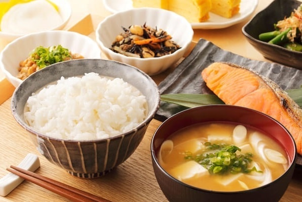 御飯、白身魚のナッツ焼き、切干大根の炒め煮、しろ菜の香味がけ、みそ汁