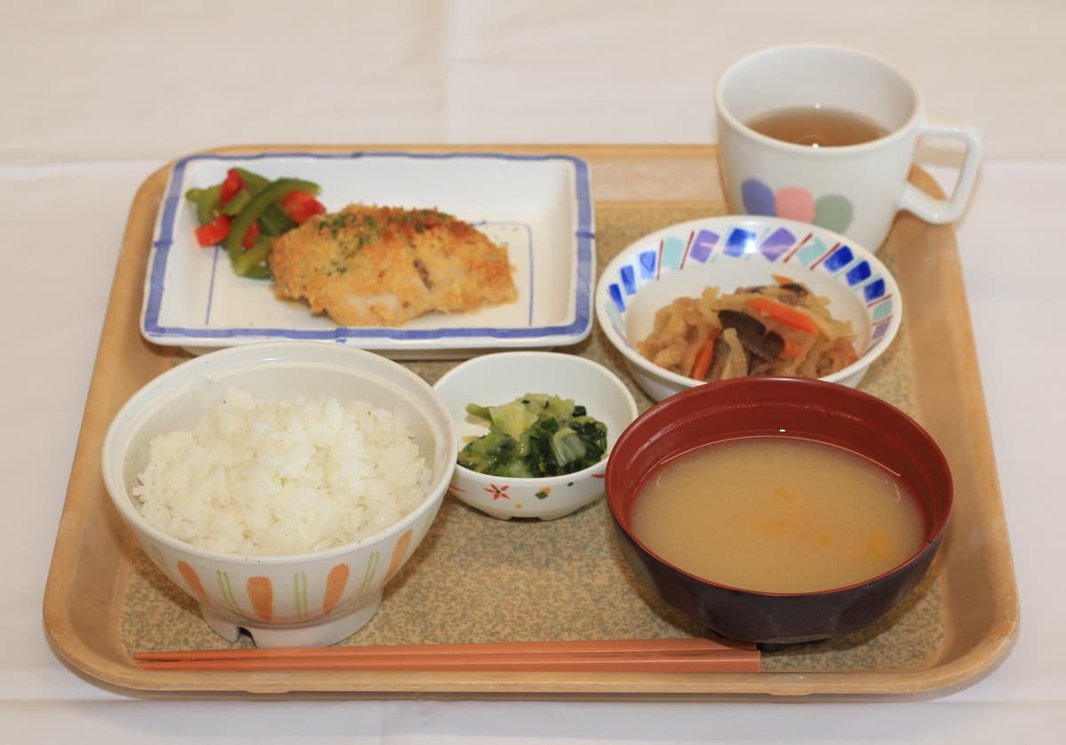 管理栄養士が炭水化物、タンパク質、脂質、ビタミン、ミネラルの5大栄養素がバランスよく食べられるように考えた食事を彩りよく、心を込めて調理し盛り付け提供しています。